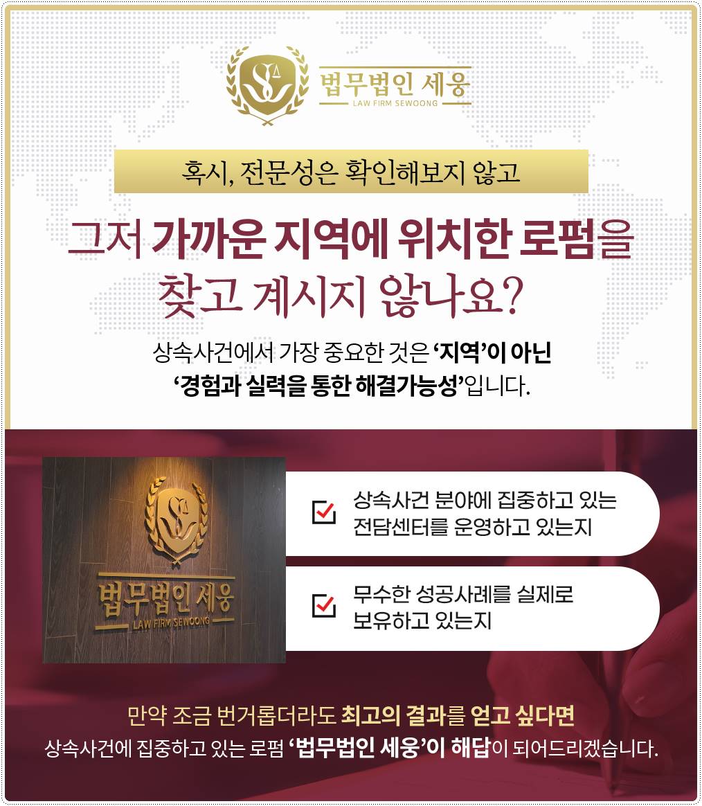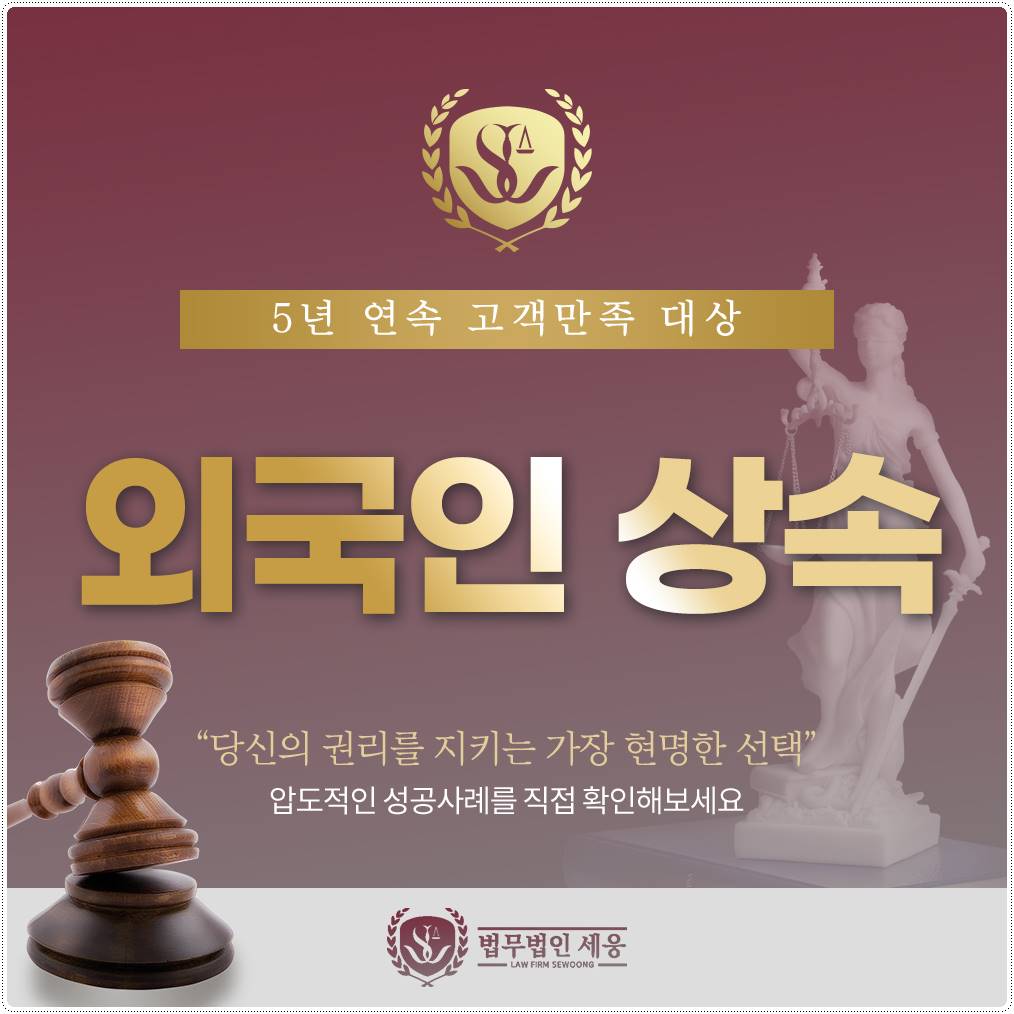 혹시 외국인 상속 재산분할청구소송을 하여야 하나 상속인이나 피상속인이 외국인 신분인 국적문제가 얽혀 있다면, 우선 국내는 물론 외국의 입법례를 상세히 알고 있는 법률전문가와 상의해보시기 바랍니다. 법무법인 세웅의 상속전문변호사가 상속전반에 대한 정확한 법률정보를 안내해드리고 있습니다. 언제든 문의를 주시면 친절하게 답변을 해드리겠습니다.