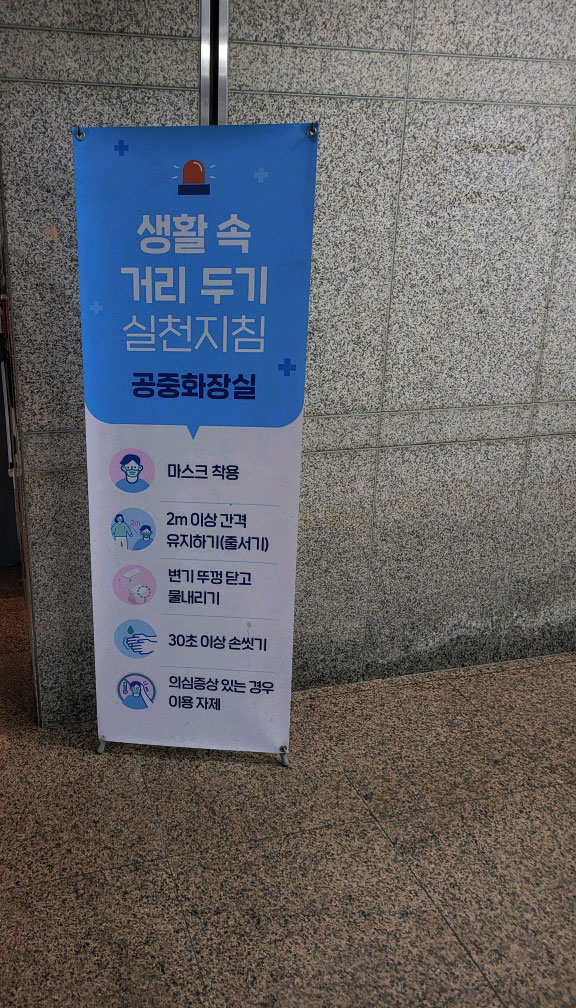 화장실에서 나오는데 거리두기 캠페인 배너가 딱~~