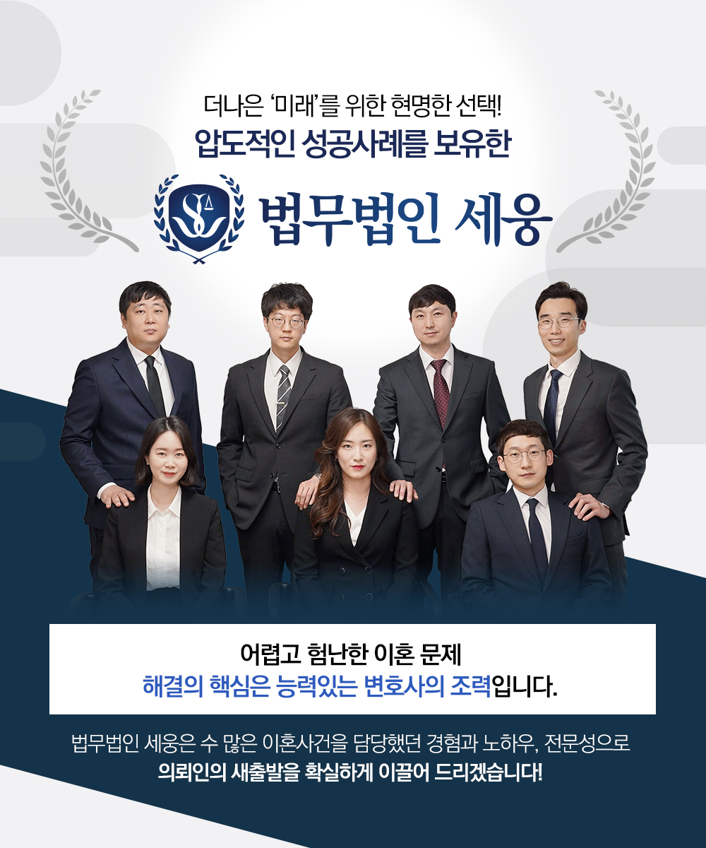 잃어버린 권리를 제대로 찾을 수 있도록 세웅의 이혼상담센터를 통해서 무료이혼법률상담을 받아 봄으로써 더 나은 미래를 위한 작은 움직임이 큰 결과를 나타내도록 가족같은 마음으로 세세하게 알려드리겠습니다.