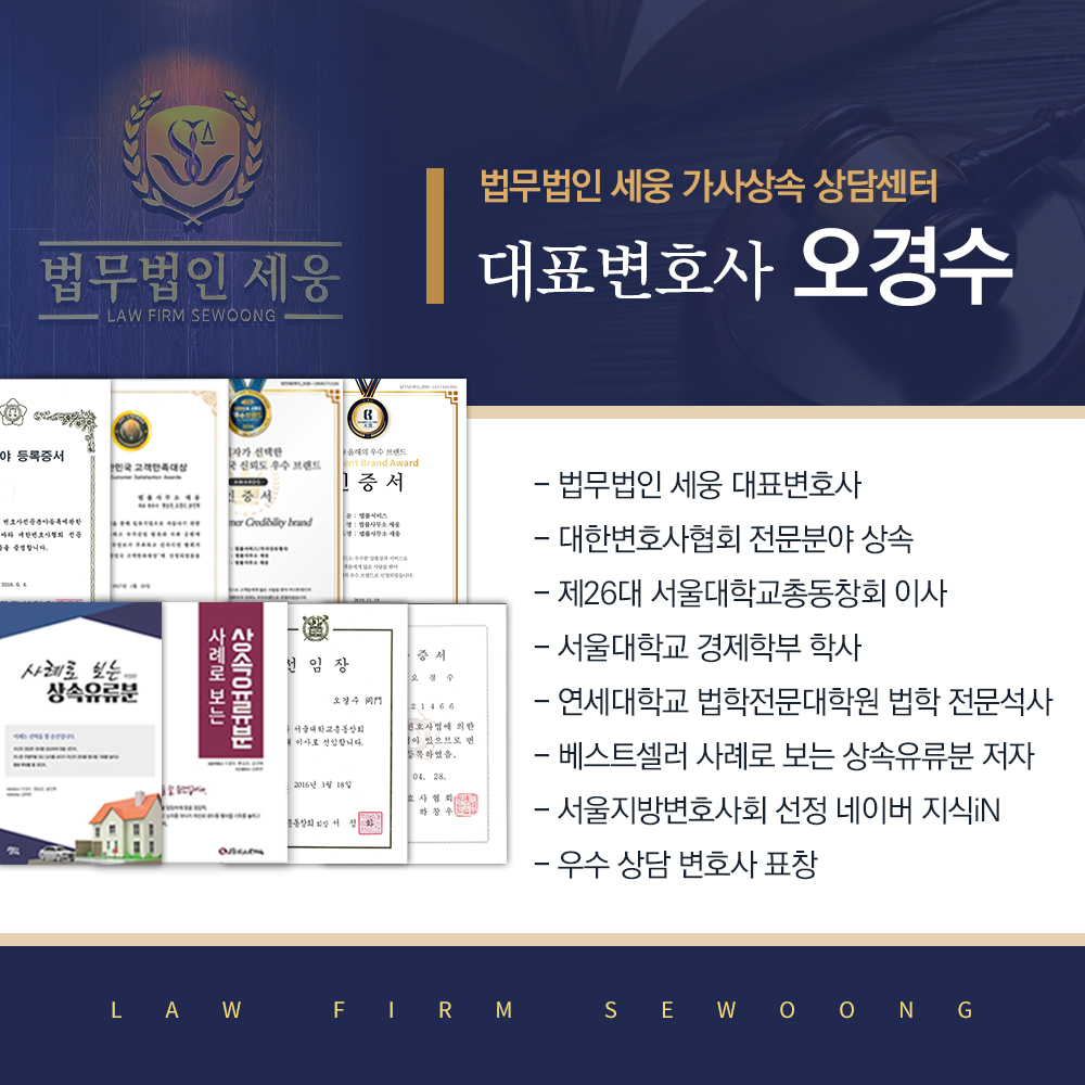 그렇다보니 전문성을 갖추고 소송에 자신감을 가지고 있는 상속변호사는 수임료 및 선임비용을 높게 제시할 수밖에 없고, 그렇지 않은 일반변호사의 경우에는 300만원 안팎의 낮은 비용을 제시하거나 심지어 성공보수도 책정하지 않는 경우가 있습니다. 경제적 여건상 고비용을 감당할 수 없어 상속전문변호사 선임을 포기할 수도 있으나 이는 결과적으로 봤을 때 좋은 선택이 되지 않을 가능성이 있습니다. 소송을 한다고 잃어버린 권리를 찾을 수 있는 게 아니라, 소송에서 승소를 하여야 권리를 찾을 수 있기 때문입니다.