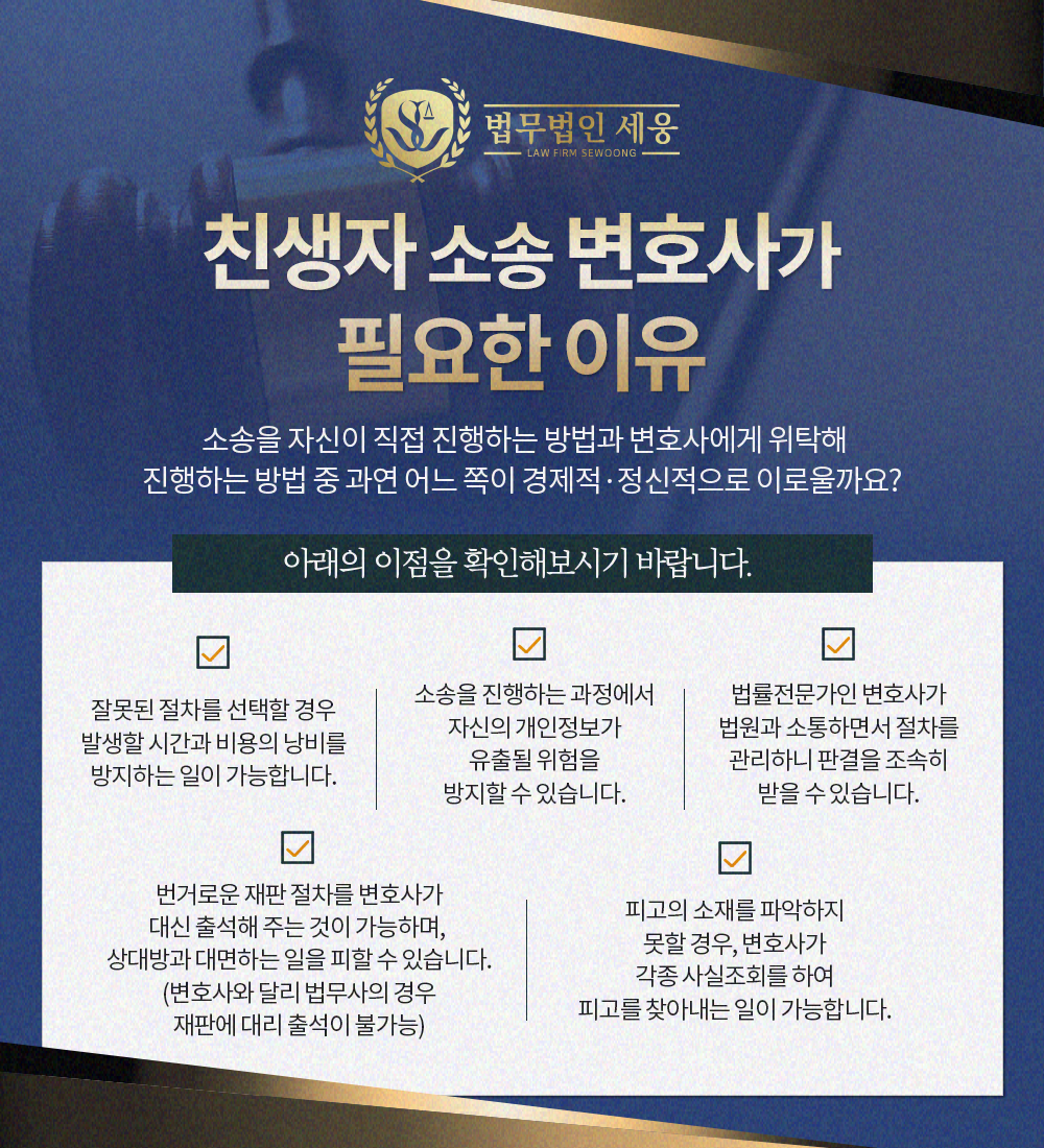 앞서 말한 것처럼 가족법 관계와 상속법 관계의 토대가 되는 중요한 소송이기 때문입니다. 따라서 이러한 소송 진행에 앞서 상담을 먼저 받아보시고 충분한 이해를 하시기를 권장 드립니다.