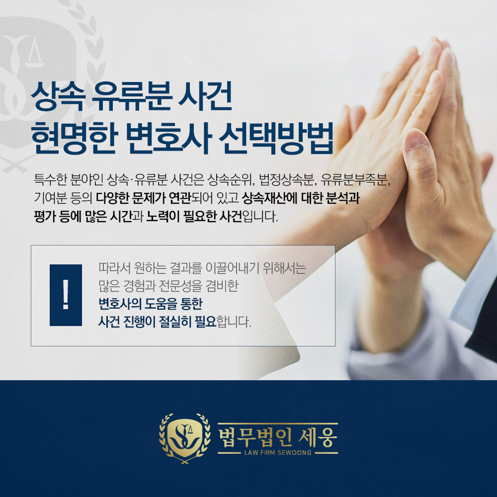 많은 사람들이 궁금해하는 문제이지만 쉽게 다가 설 수 없는 부분이기도 합니다. 애써 신경을 쓰지 않고 있다가 훗날 권리를 주장하지 못하여 마음이 쓰린 분들도 적지 않을텐데요. 재산의 규모의 많고 적고의 문제를 떠나서 발생할 수 있는 상속 문제, 이는 일반 민사사건과는 달리 가족들 사이의 문제라 더 신중하고 조심스럽게 접근하여야 합니다. 분쟁을 종결한 이후에 가족들의 관계까지도 생각을 하여야 하죠.