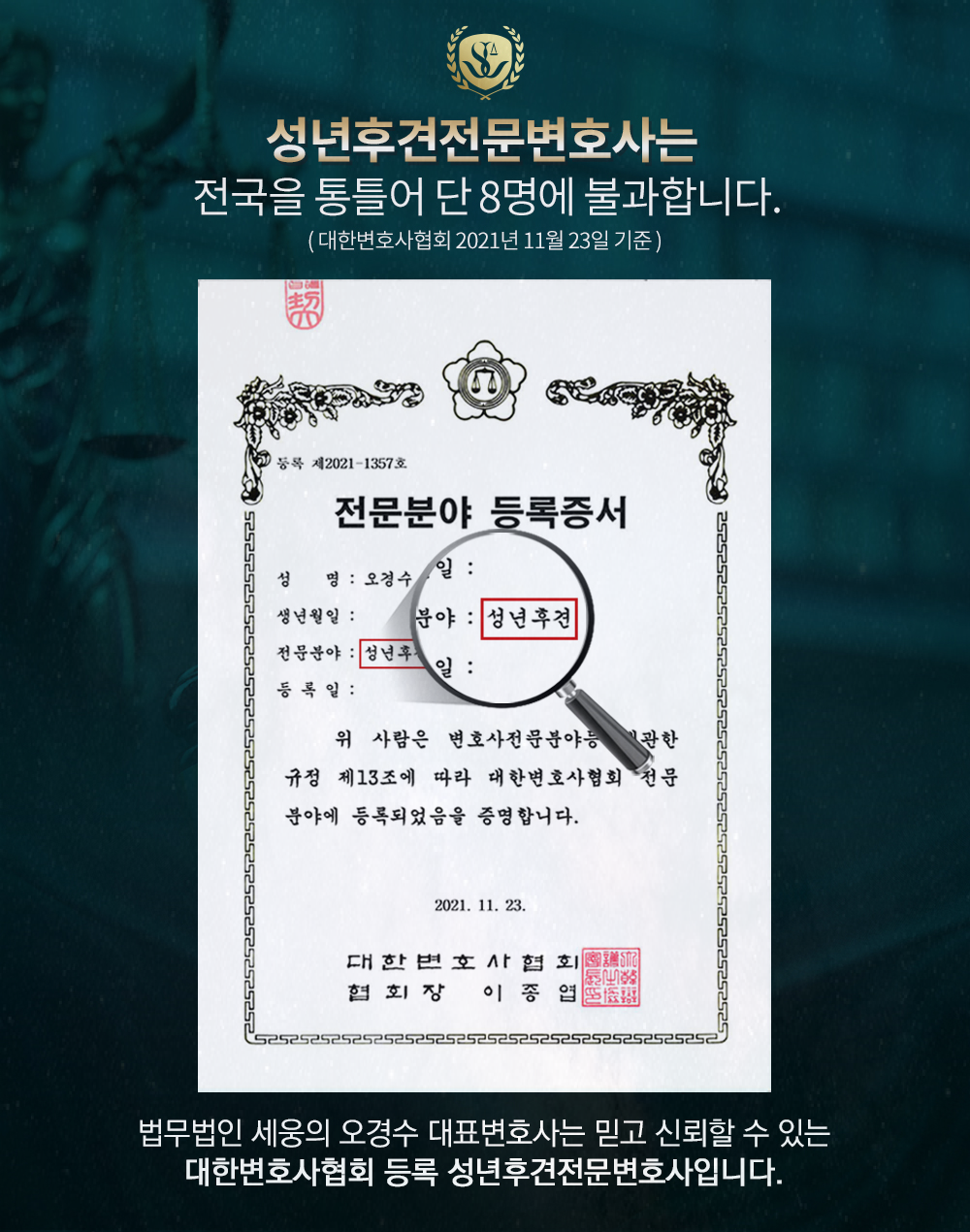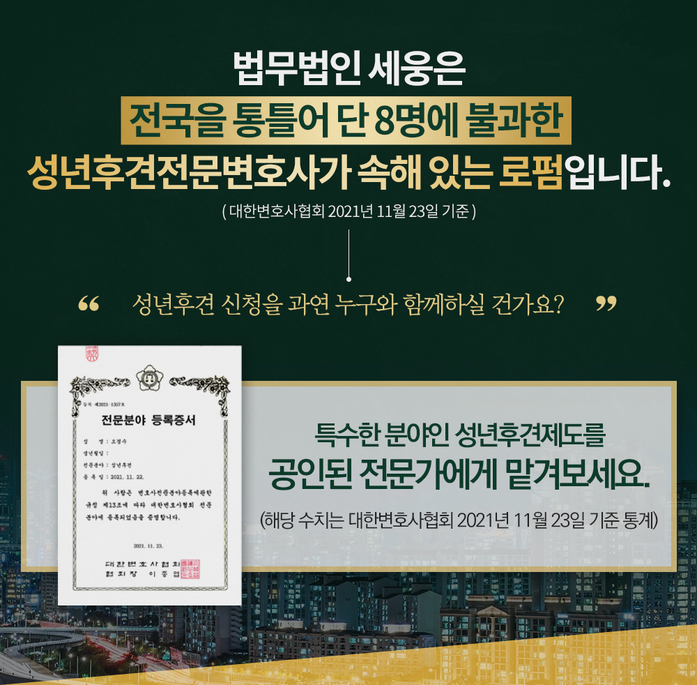 최근 노령인구가 급증하는 추세에다 정신보건법의 개정으로 성년후견개시심판청구에 관한 관심이 더욱 커지고 있습니다. 그동안 성년후견개시심판청구를 통해 보호를 받을 수 있었던 많은 사람들이 법의 사각지대에 놓여 있었죠. 하지만 점차 성년후견제도가 알려지기 시작하면서 성년후견개시심판청구 사건의 수가 10,000건에 이르렀습니다.
