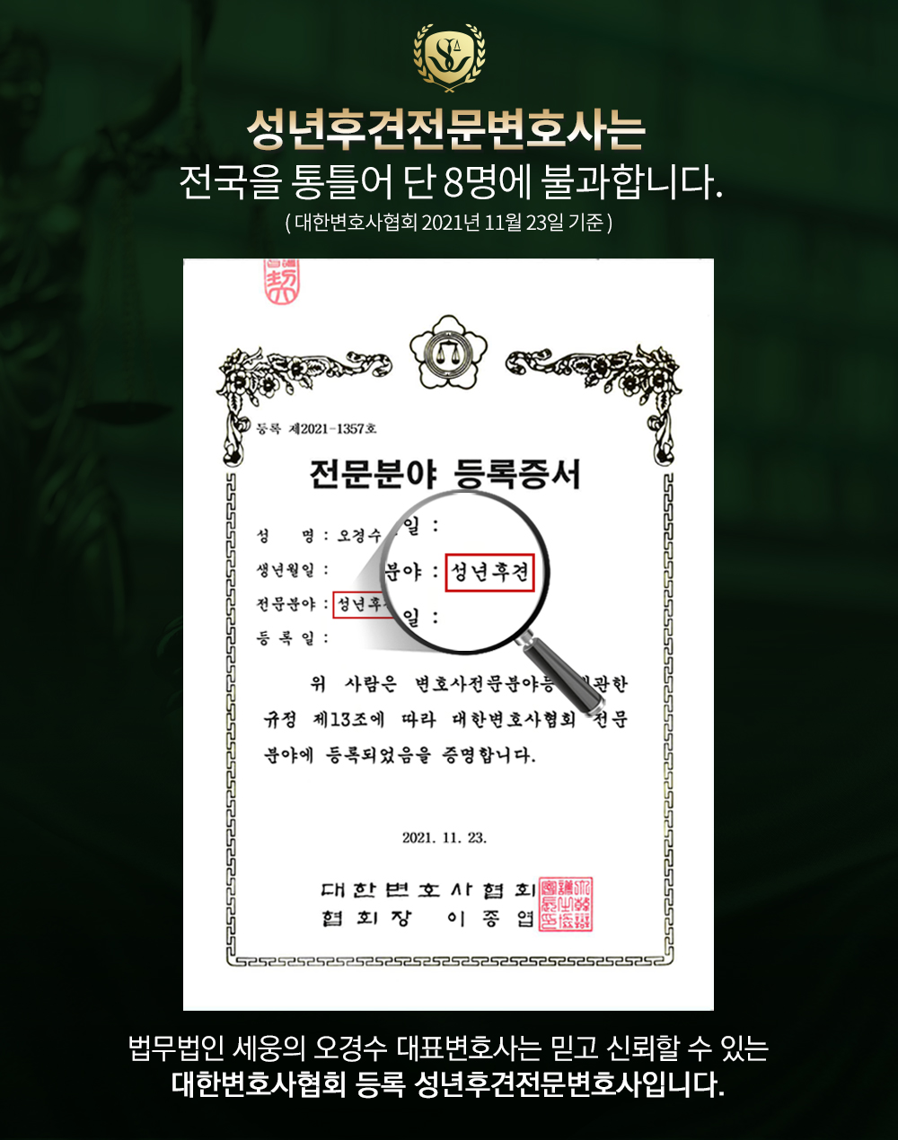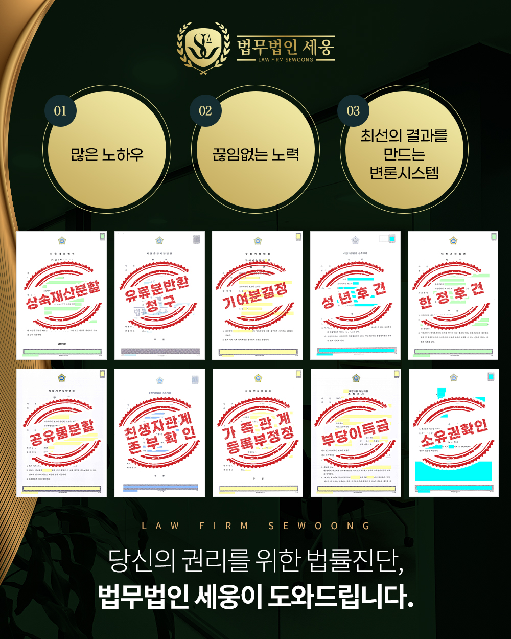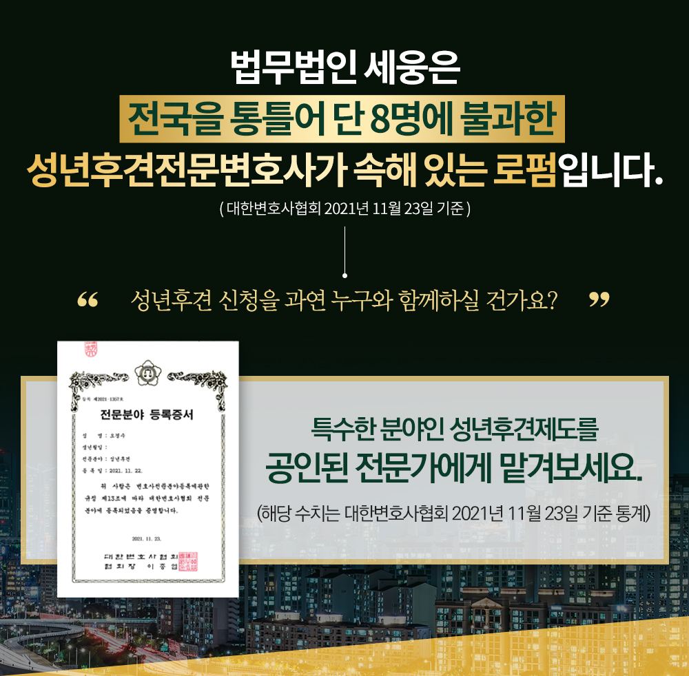 아직까지 성년후견제도는 시행된지 오래되지 않아 변호사들조차 실무적인 자세한 내용은 모르는 경우가 있습니다. 따라서 이 제도를 통해 가족간 분쟁을 예방하고 자신의 권리도 안전하게 지키고 싶다면 경험 있는 변호사와 꼼꼼히 진행하시기 바랍니다. 실수와 무지로 성년후견을 청구하여 다시 돌릴 수 없는 시행착오를 겪기보단 꼭 경험 있는 변호사와 상담을 하실 것을 권해드립니다.