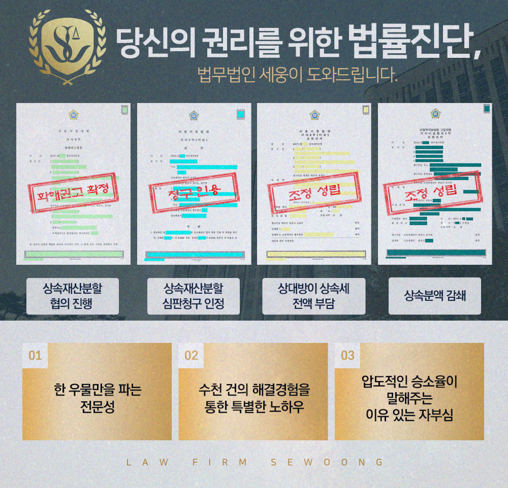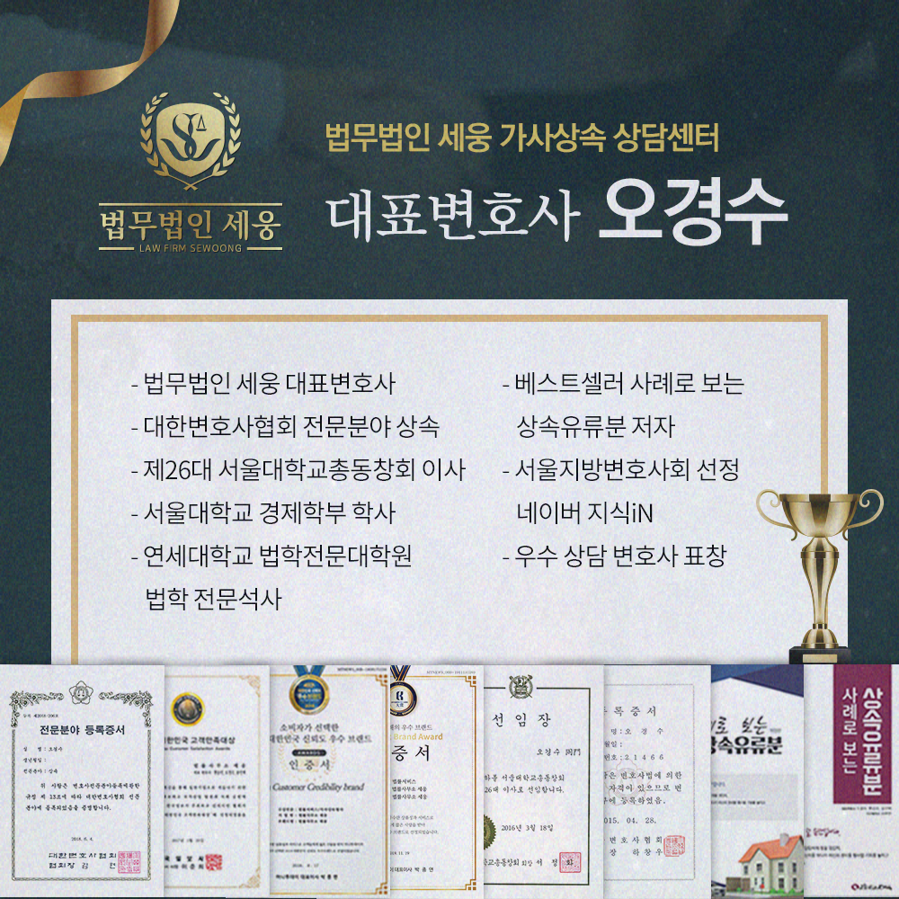 최근 유류분소송이나 기여분에 대한 내용의 소송이 많아지면서 상속법전문변호사를 찾는 이들이 많아졌습니다. 판례와 법률을 기반으로하여 사안에 따른 적절한 대안을 만들 수 있는 방법을 찾는다면 변호인의 상담을 통해 법리적으로 판단할 수 있는 노력을 기울여보시기 바랍니다. 안전하고 권리를 찾을 수 있는 방법을 찾는다면 더할 나위없이 좋겠지요.