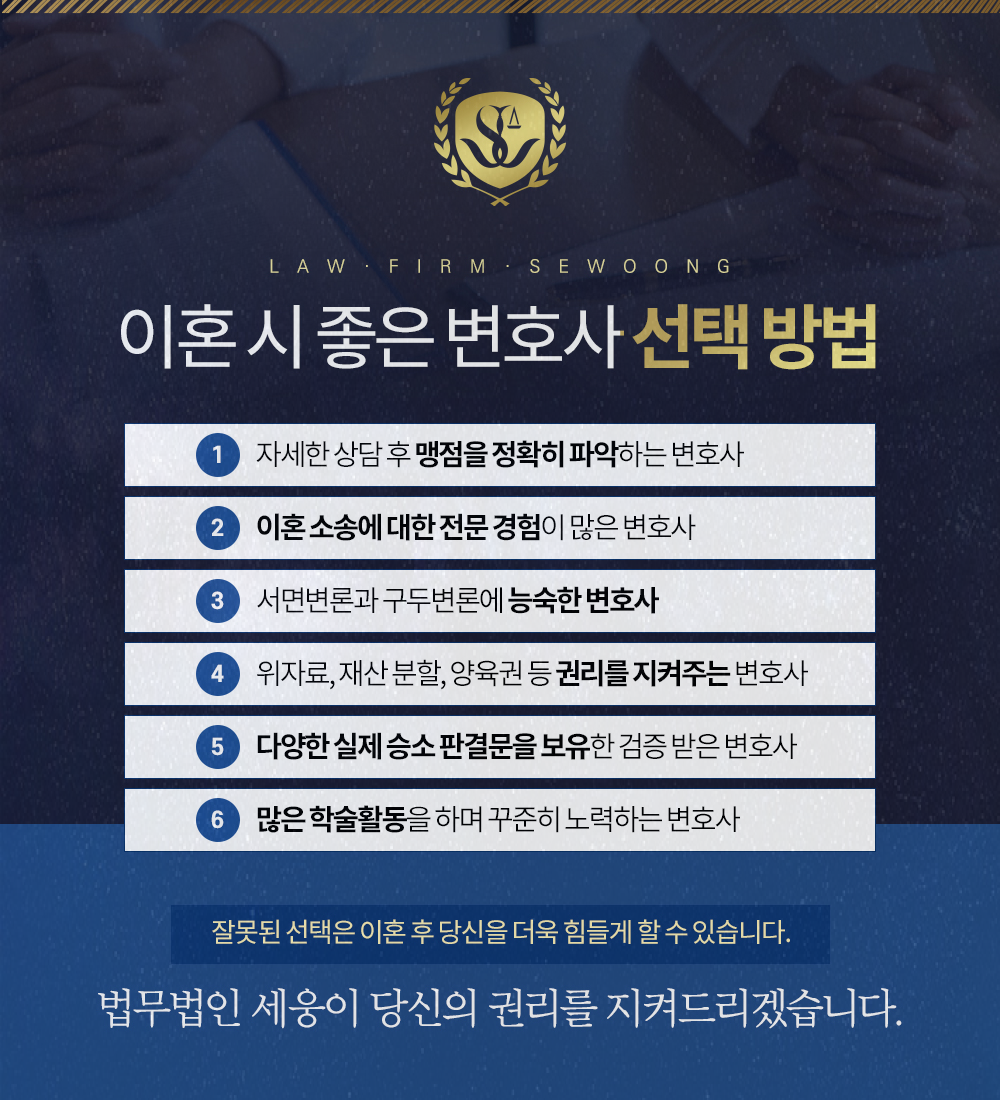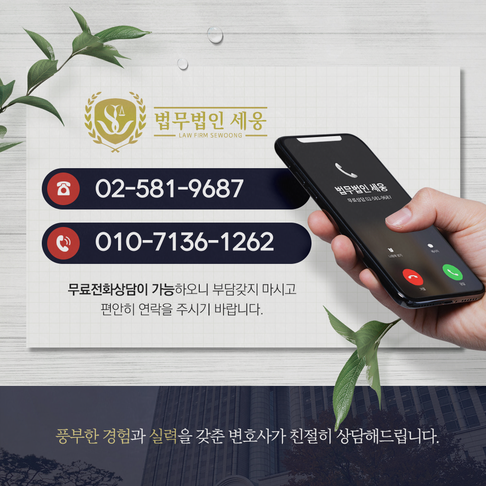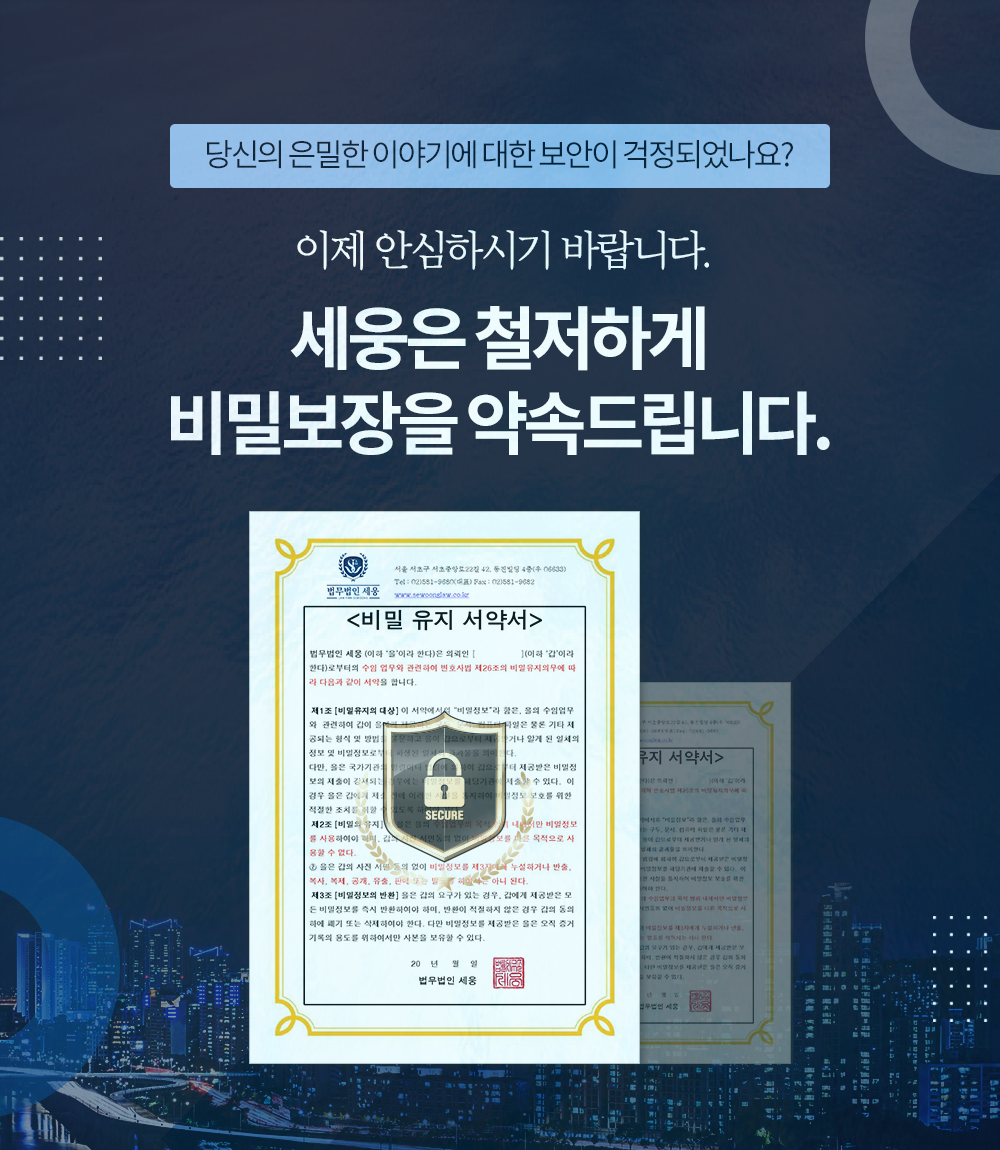 아내의 외도로 분한 마음이 들었다고 하더라도 상간남위자료청구소송을 준비하는 과정은 신중하게 전문가의 조언을 듣고 따르는 편이 옳을 수밖에 없습니다. 자신의 정신적 피해를 온전히 보상받고 상대방에게 금전적 징벌을 가하고 싶다면 말압나더. 세웅은 상간남위자료청구소송을 준비하는 분들을 위해 동성인 남성변호인이 직접 이야기를 들어드리며 상담을 진행해드리고 있습니다. 그러니 편안하게 고민을 털어놓아 보시기 바랍니다.
