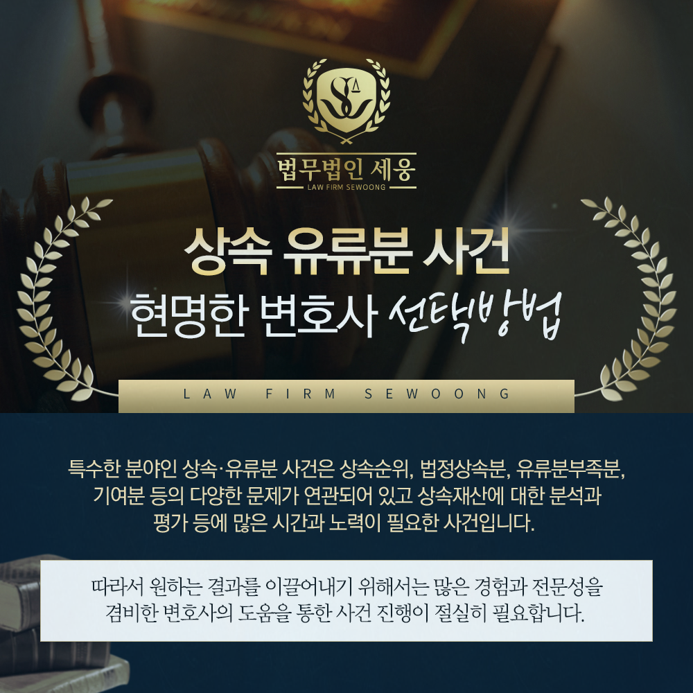 법무법인 세웅은 유산상속에서 문제될 수 있는 모든 첨예한 다툼에 있어서 많은 경험과 노하우를 보유하고 있습니다. 가족관계에서 발생할 수 있는 법적인 다툼에서 법에서 정한 절차를 이용하여 해결할 수 있는 방안을 신속히 마련할 수 있습니다.