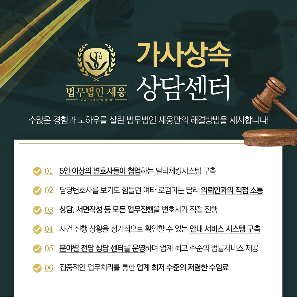 물론 수임료도 무시할 수 없는 요소이긴 합니다. 다만 충분한 경쟁력을 가진 상속변호사를 통해 소송에서 원하는 결과를 얻는 게 우선이어야 합니다. 100원으로 200원을 얻을 건지, 1,000원으로 10,000원을 만들어낼 건지 판단은 여러분의 몫입니다.