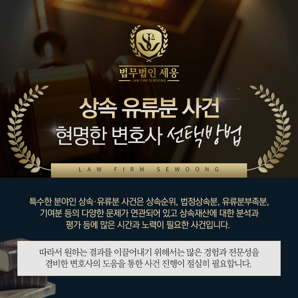 안녕하세요 여러 소송 중에서도 상속 유류분 사건만을 전담하고 있는 당신의 상속 전담 변호인 법무법인 세웅 가사상속 전담센터 오경수 대표 변호사입니다. 오늘은 유류분반환청구소송에서 자주 문제 되는 특별수익에 대하여 소개하며 소송 전반의 쟁점에 대하여 알아보도록 하겠습니다.