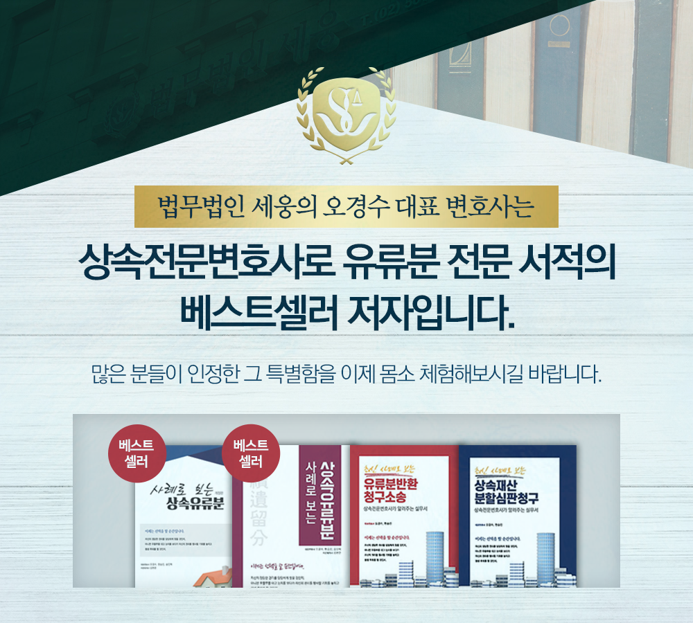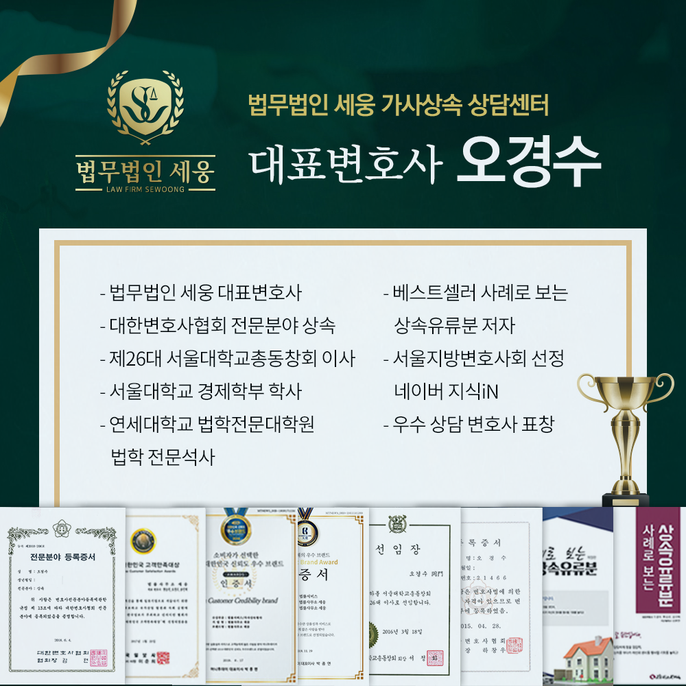 그 결과 다양한 사건을 맡아서 처리하기 보다는 상속사건에 집약적인 업무노력을 투여하는 방법으로 업무효율은 끌어올리면서 혁신적인 비용절감을 도모하게 되었습니다. 그래서 세웅의 상속전문상담센터에서는 업계 평균 이하의 합리적이면서 저렴한 상속전문변호사 선임비용을 제시해드리고 있죠.