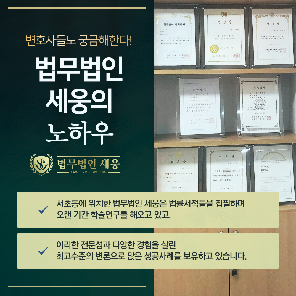 또한 여러 상속분쟁에 대한 성공적인 결과들을 통해 낮은 비용을 지불할 경우 사건의 패소할 가능성이 증가하는 것이 아니냐는 불안감도 불식시켜 드리고 있습니다. 이는 본 사무실에 방문하실 경우 소개해드리는 여러 성공사례를 통해 확인하실 수 있습니다.