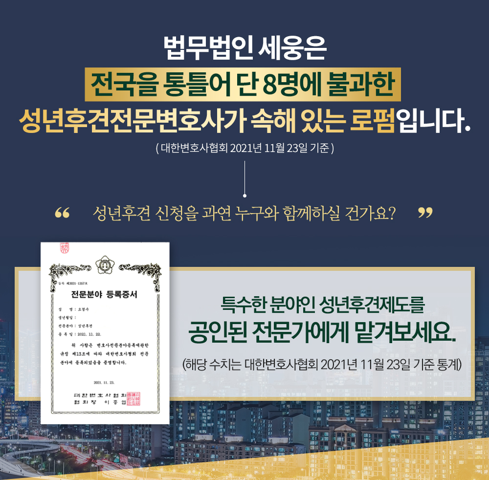 성년후견인제도 따져야 할 쟁점이 많은 절차이며 신청방법이 쉽지많은 않습니다. 적절한 후견이 이뤄지기 위해서는 반드시 경험과 전문지식을 충분히 갖춘 전문가 도움이 꼭 필요하다는 사실을 잊지 마시기 바랍니다.
