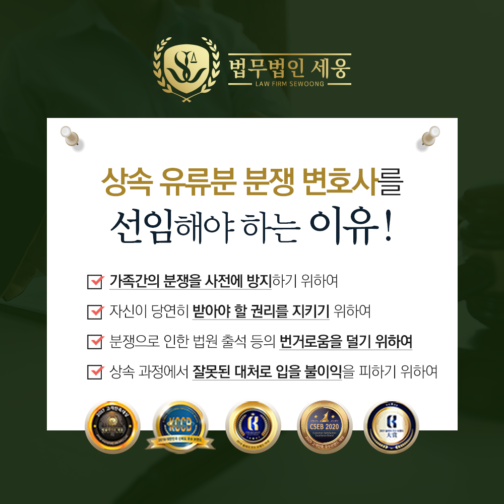 상속재산 분할소송 협의를 앞두고 있거나 협의가 잘 진행되지 않나요? 심판 절차에 대해 궁금한 것이 있으신가요? 세웅의 가사상속상담센터의 전화상담을 진행해보기 바랍니다. 상속법 파트에 대한 폭넓은 경험과 노하우를 바탕으로 친절한 상담을 해드립니다. 고민하지 마시고 연락주시기 바랍니다.
