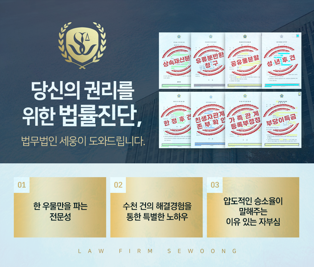 이미 작성된 유언의 내용을 바꾸기를 원하신가요? 혹은 부모님이 남기신 유언의 효력에 의문이 존재하신가요? 그리하여 유언 취소 방법을 찾고 계신가요? 법무법인 세웅의 가사상속전담센터는 상속전문변호인을 필두로 수많은 유언 소송의 경험을 통해 최선의 방책을 제시하고 있는 전문 로펌이라 할수 있습니다.
