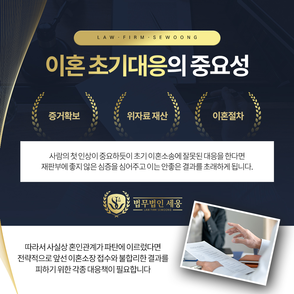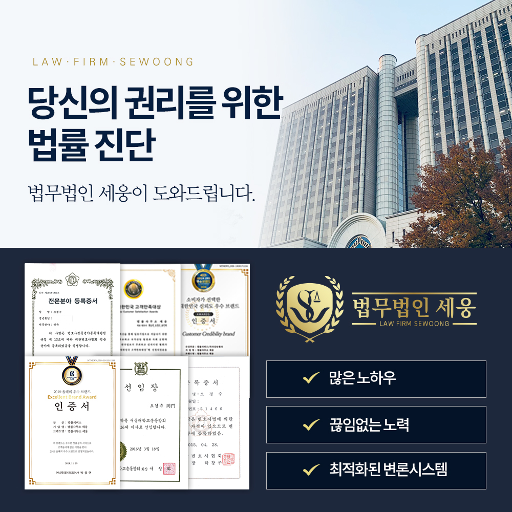 협의이혼 재산분할 합의는 단지 상호간의 협의 뿐 아니라 자녀 및 재산까지 최소한의 리스크로 최대한의 효율을 얻어내는 것이 중요하기에 현재 자신이 처하게 된 상황에 대해서 냉철하고 제대로 도움을 받을 수 있도록 준비해보는게 우선일 것입니다. 당신을 위한 전담변호인 법률사무소 세웅에서는 원활한 협의이혼 재산분할을 할 수 있또록 무료법률상담을 통해 혼자서 감당할 수 없는 법적어려움을 해결해 드리고 있으며 합리적인 결정을 내릴 수 있도록 조언해 드리고 있습니다.